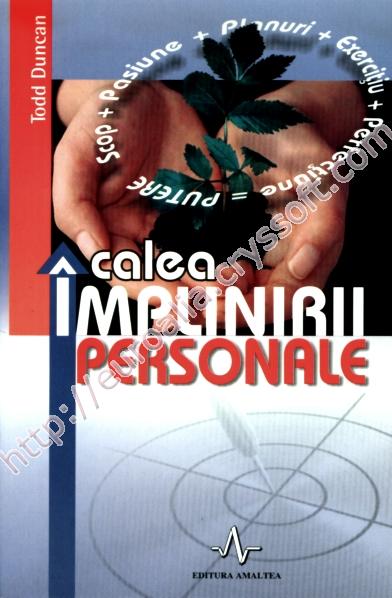 Calea împlinirii personale vă va ajuta să descoperiți în voi potențialul latent, încă neexploatat. Vă va oferi rețeta acumulării puterii extraordinare pentru a putea fi ceea vă doriți să fiți. Vă va ajuta să realizați astăzi lucruri care mâine, dar și în anii ce vor veni, vă vor schimba viața radical.