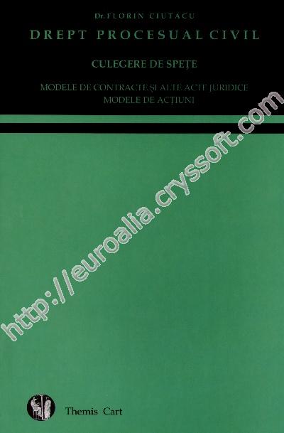 Culegere de spețe despre acțiunea civilă, participanții la procesul civil, competență, actele de procedură, judecata în fața primei instanțe, apel, recurs, contestația în anulare, revizuire, recursul în interesul legii, ordonanța președințială, procedura divorțului, acțiunile posesorii, partajul judiciar, arbitrajul, sechestrul asigurator, sechestrul judiciar, titlurile executorii, poprirea, urmărită silită imobiliară și urmărirea silită mobiliară, contestația la executare, procedura reorganizării judiciare și a falimentului, procedura concilierii prealabile și procedura somației de plată.